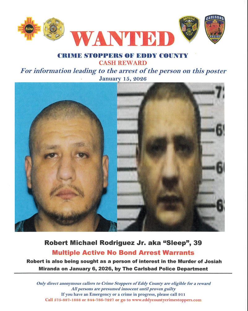 Robert Michael Rodriguez Jr. aka "Sleep" is being sought as a person of interest in the Murder of Josiah Miranda on January 6, 2026.